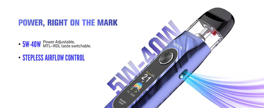 2. 5W–40W adjustable power, supporting MTL to RDL styles.