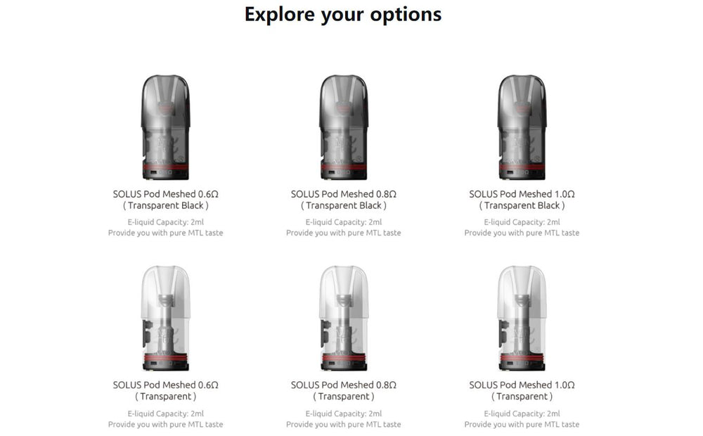The Solus Pod Cartridge is designed especially for the Smok Solus / Solus 2 / Solus G-Box / Solus G / Solus GT / Solus GT Box coming with 3ml e-juice capacity.