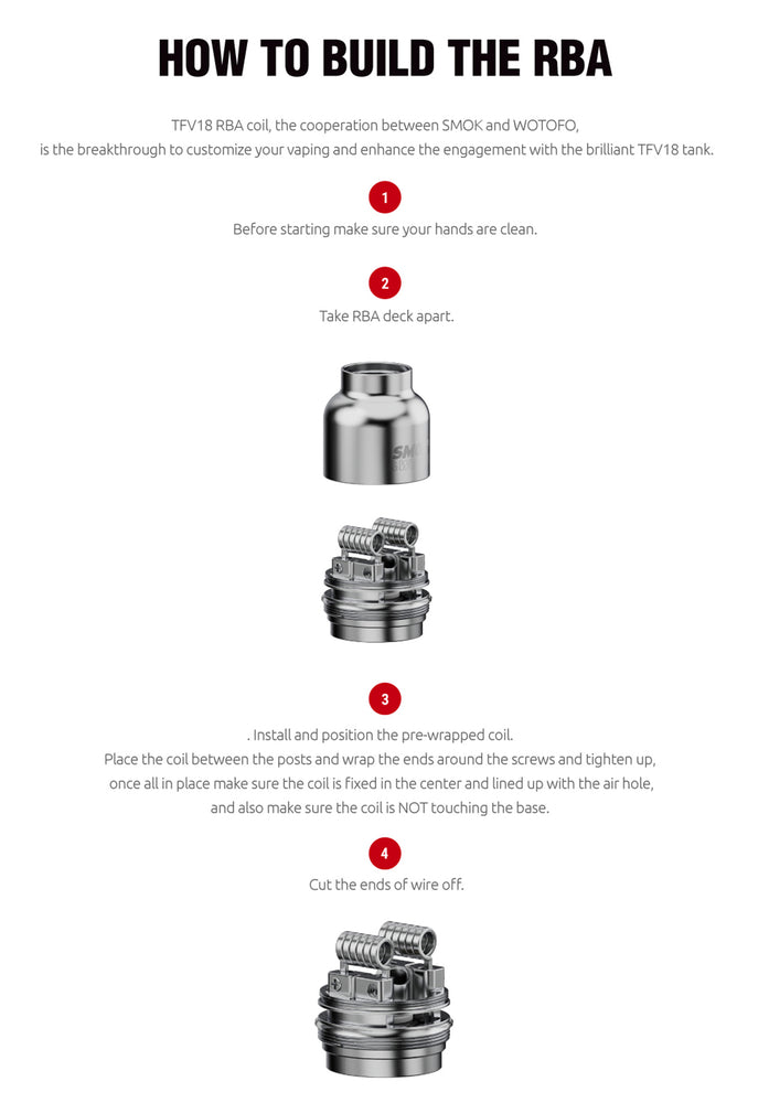Capacity: 7.5ml (with TFV18 Meshed 0.33ohm Coil) / 6.5ml (with TFV18 Dual Meshed 0.15ohm Coil)