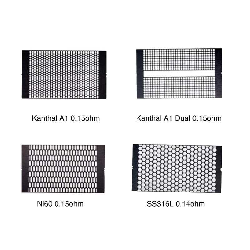Resistance: Kanthal A1 0.15ohm/Kanthal A1 Dual 0.15ohm/Ni60 0.15ohm/SS316L 0.14ohm