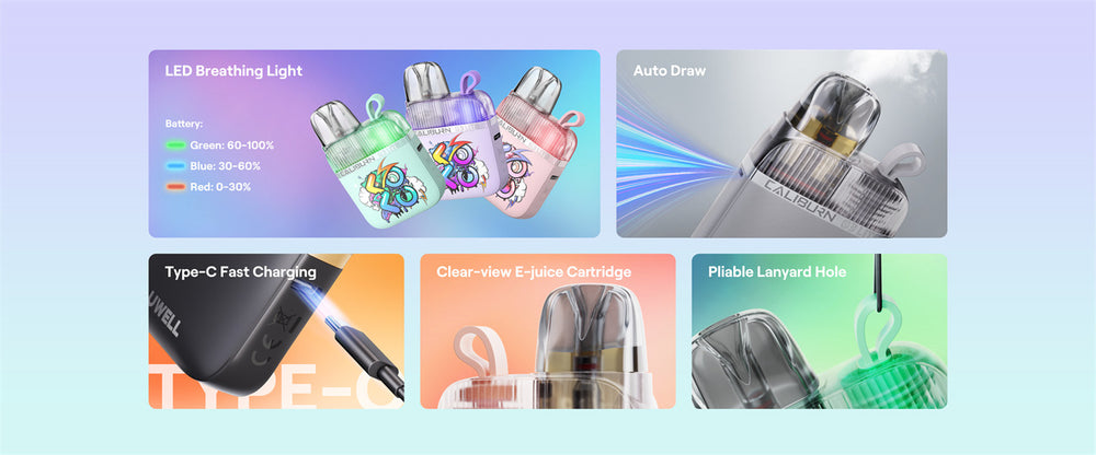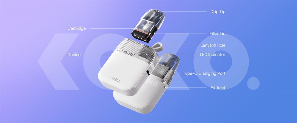 Uwell Caliburn G3 Lite KOKO Pod System Kit features built-in a 1200mAh battery and 2.5ml vape juice capacity. G3 Lite KOKO is more portable with a pliable lanyard hole for your convenience. RGB Indicator lights replace the screen for extra energy to support vaping. With full compatibility with the G3 Pod Cartridges, this pod system can hold 2.5ml e-juice and the maximum output power reaches 25W. Nicotine sale e-juice and e-liquid with freebase nicotine are both suitable for this pod kit. Enjoy easier and more flavorful vaping with your Uwell Caliburn G3 Lite KOKO!