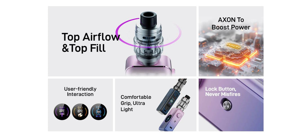 Vaporesso GEN SE Mod Kit is powered by Single 18650 batteries (not included), offering an impressive power range from 5 to 80W. The Gen SE Kit also features a 0.96inch TFT screen for a clear,GEN SE/MAX Mod Kit is designed specifically for DTL users. The paired iTank T has been upgraded with top airflow and top filling, making refills simple and enhancing leak resistance. The GTi coil now features COREX 2.0 technology, delivering improved flavor and vapor production. The GEN MOD utilizes the AXON CHIP and comes with a newly upgraded UI, offering multiple modes and themes to customize your DTL vaping experience.