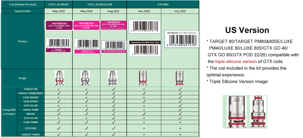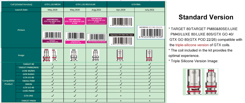These GTX Coils 0.2ohm & 0.3ohm are perfectly compatible with Vaporesso Target PM80 Device and are designed for even better flavor and vapor, for big clouds.5pcs each pack