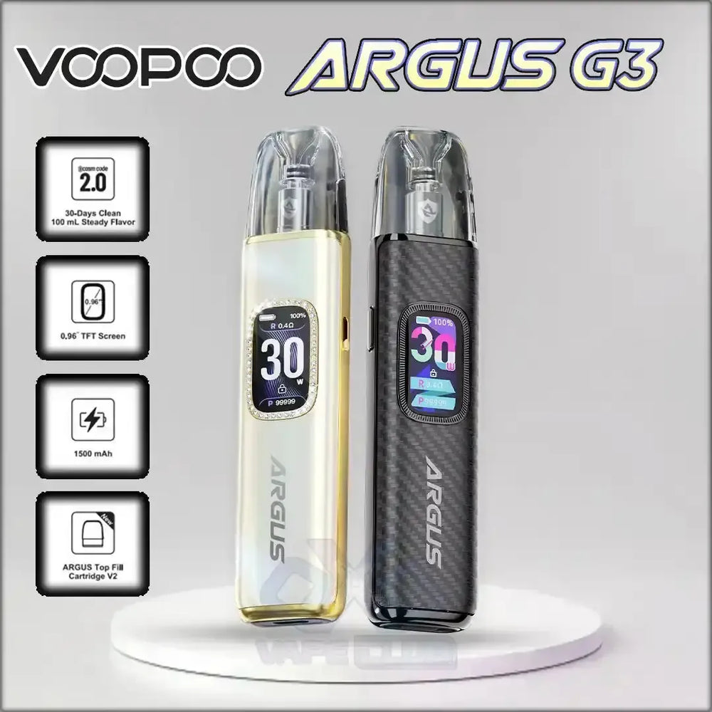 VOOPOO Argus G3 Pod Kit features a built-in 1500mAh battery 30W max output.Compatible with New VOOPOO Argus Top Fill Cartridges V2 Pod.