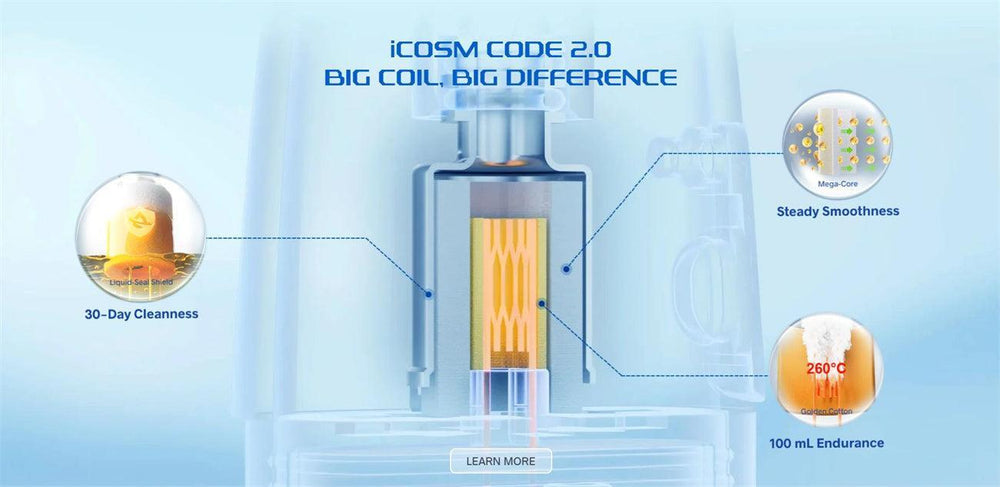 2. iCOSM CODE 2.0 Flavor Tech – Delivers clean, stable flavor with 30-day anti-leak protection.