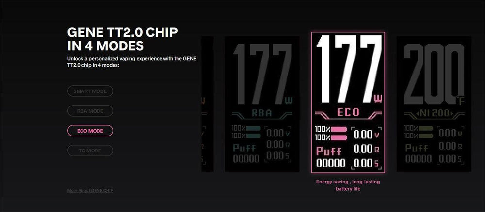 Smart mode: This mode automatically matches the coil resistance and restricts the maximum power that can be used, making the atomizing experience smarter.