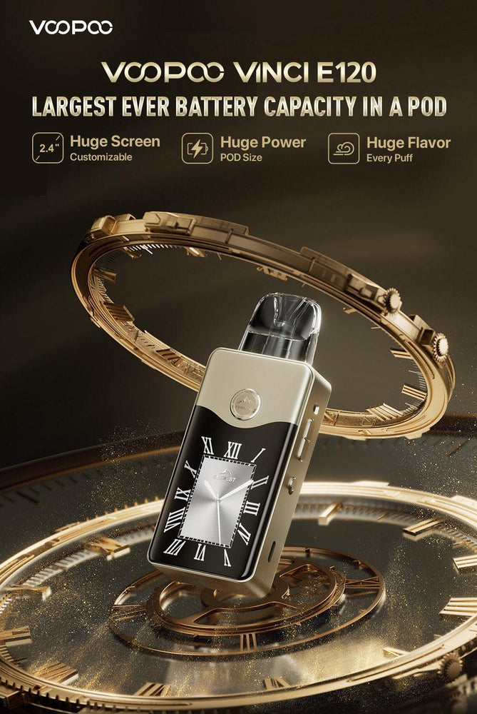 VOOPOO VINCI E120 represents an innovative creation that harmonizes aesthetics with exceptional performance. The 2.4-inch TFT high-resolution display functions as a canvas in the palm of hands, incorporating up to 18 exquisite watch-face screensavers for personalized customization. As a pioneering POD device from VOOPOO, VOOPOO VINCI E120 adeptly merges the robust performance of a traditional MOD with the lightweight convenience of a POD system. The flat, pocket-sized design ensures effortless portability, yet the built-in 4500mAh high-capacity battery provides long-lasting vaping duration up to 10 days* with a single charge. With a substantial 120 W power output, it enables the immediate release of potent energy, delivering an exhilarating DTL vaping.