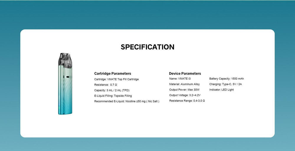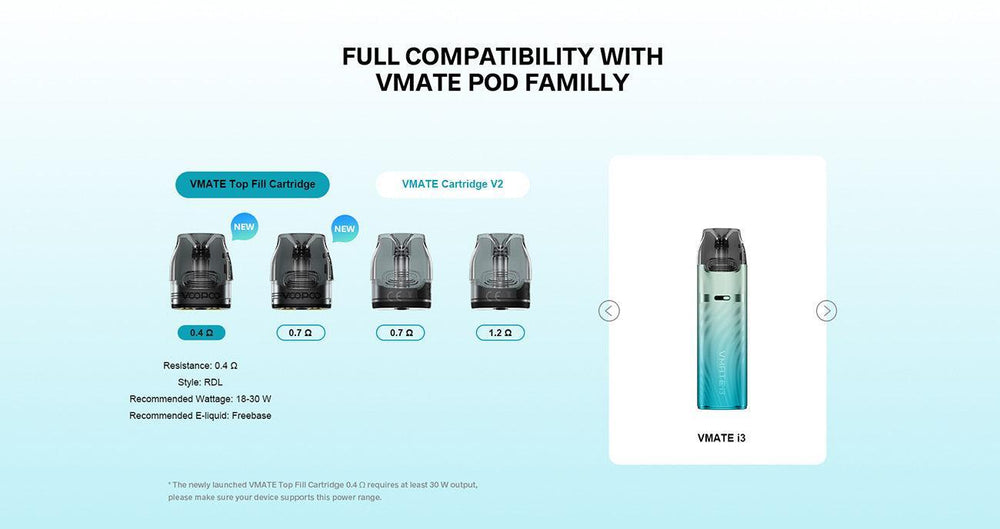 Compatible Pods: Vmate Top Fill & Vmate V2 Cartridges
