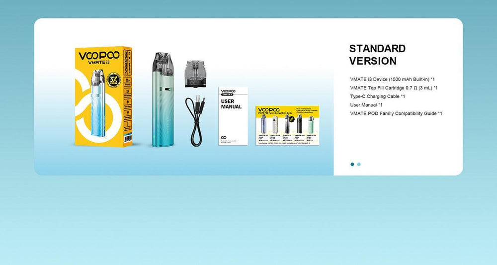 The Voopoo Vmate i3 Pod Kit offers a lightweight yet powerful pod system, designed for portability and consistent performance. Powered by a 1500mAh built-in battery with 5–30W Smart Match output, it ensures all-day endurance while maintaining a slim and compact body at just 49.8g. Equipped with the upgraded 3X Vmate Top Fill Cartridge, it delivers triple improvements in flavor consistency, leak resistance, and coil lifespan—lasting up to 90ml of e-liquid without burning.